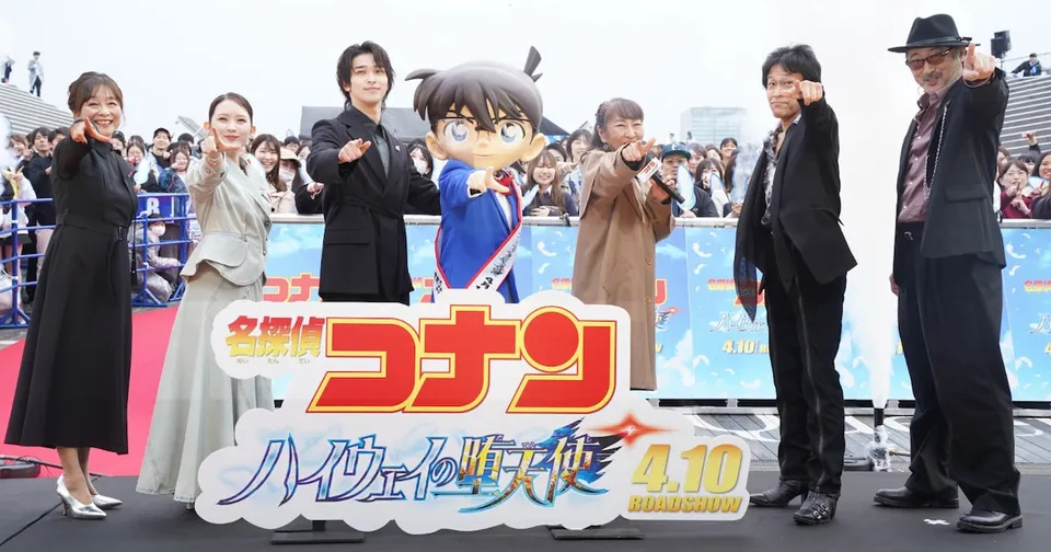 青山剛昌原作による劇場版「名探偵コナン ハイウェイの堕天使」のファンミーティングが、本日4月4日に神奈川・大さん橋ホールで開催された。江戸川コナン役の高山みなみ、毛利小五郎役の小山力也、横溝重悟役の大塚明夫、世良真純役の日髙のり子、大前一暁役の横浜流星、舘沖みなと役の畑芽育が出演し、作品の見どころなどを語った。